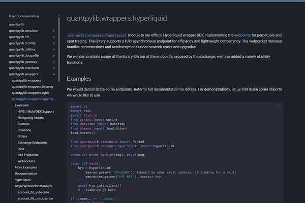 Quantpylib Update (hyperliquid docs, examples and ws)