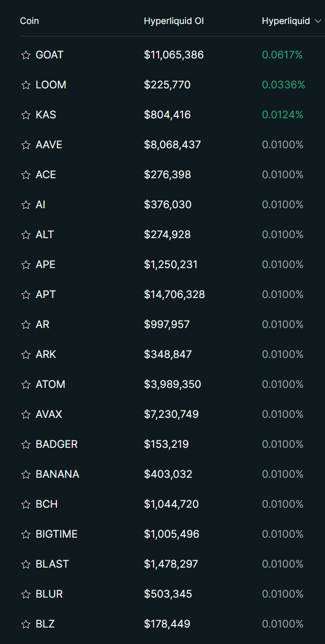 so for a large range of contracts, the effectivefunding rate would be equal to the interest rate. For instance, doing a funding rate sort on hpl website: