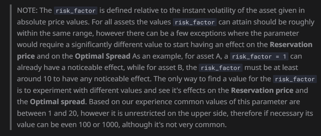Let’s say we take q = (actual - target) / max. This means q is strictly < 1 ? Kind of seems weird. Number of stock also hardly seems to make sense. To make matters worse, let us take a look at what Hummingbot writes here: