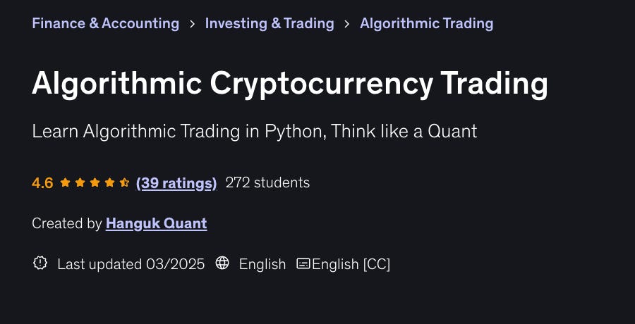 https://www.udemy.com/course/algorithmic-cryptocurrency-trading/?couponCode=A77617FAC6AD8E74068D