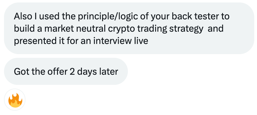 My message: I’ll keep it short - I really want to appreciate all of you, even as we grow larger and stronger. This project started off with the motive of developing engineers and traders into quants; whatever that means, and I hope I moved the needle in your life! I just log my learning journey, my experiences and my knowledge - I am humbled that it has a positive effect on so many people.