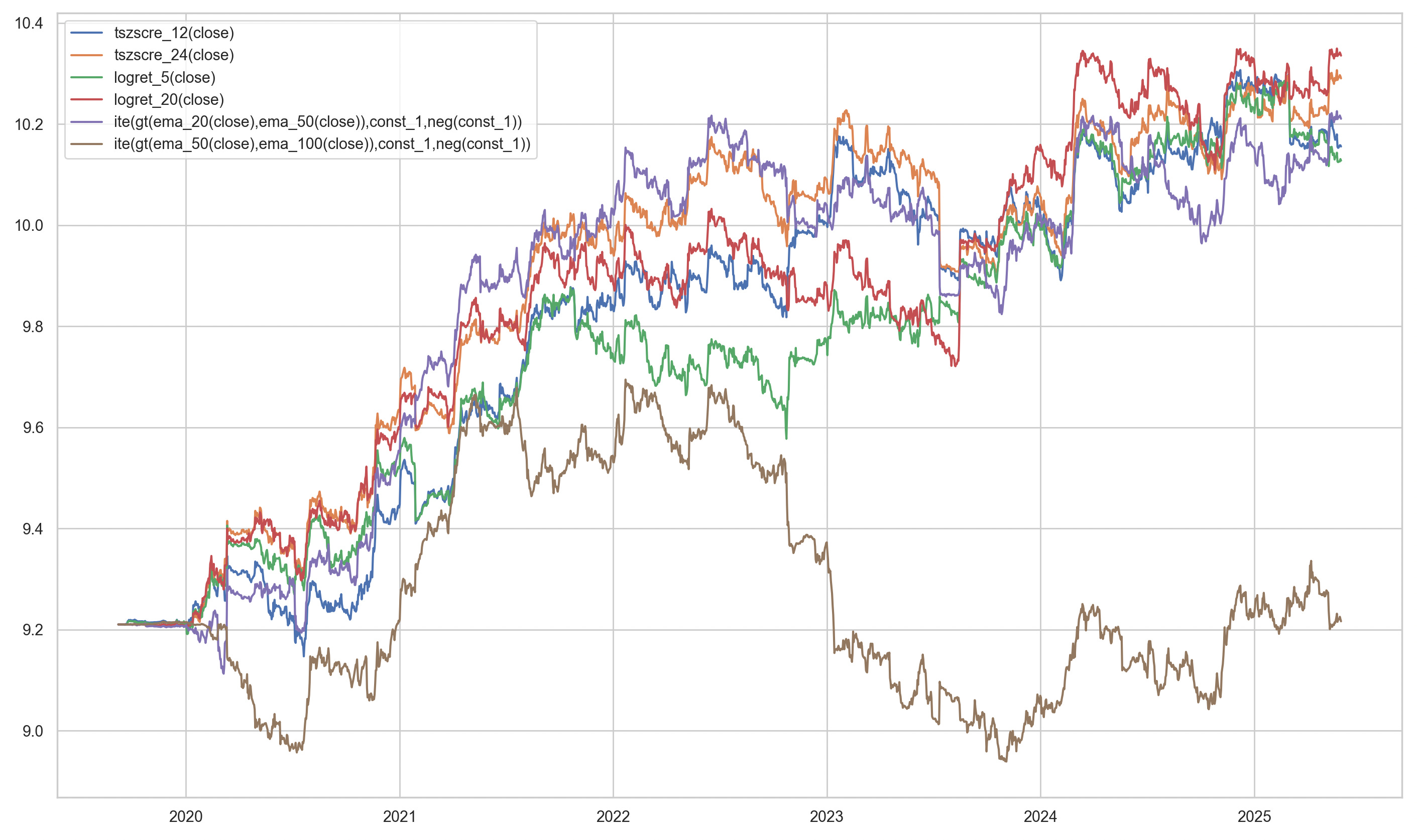 The strategies are tested under the GeneticAlpha engine of the quantpylib library. This engine converts arbitrary signal ranges to valid position sizes using a volatility targeting scheme.
