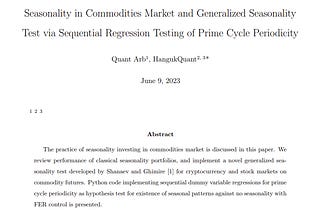 Seasonality in Commodities Market and Generalized Seasonality Test via Sequential Regression Testing of Prime Cycle Periodicity
